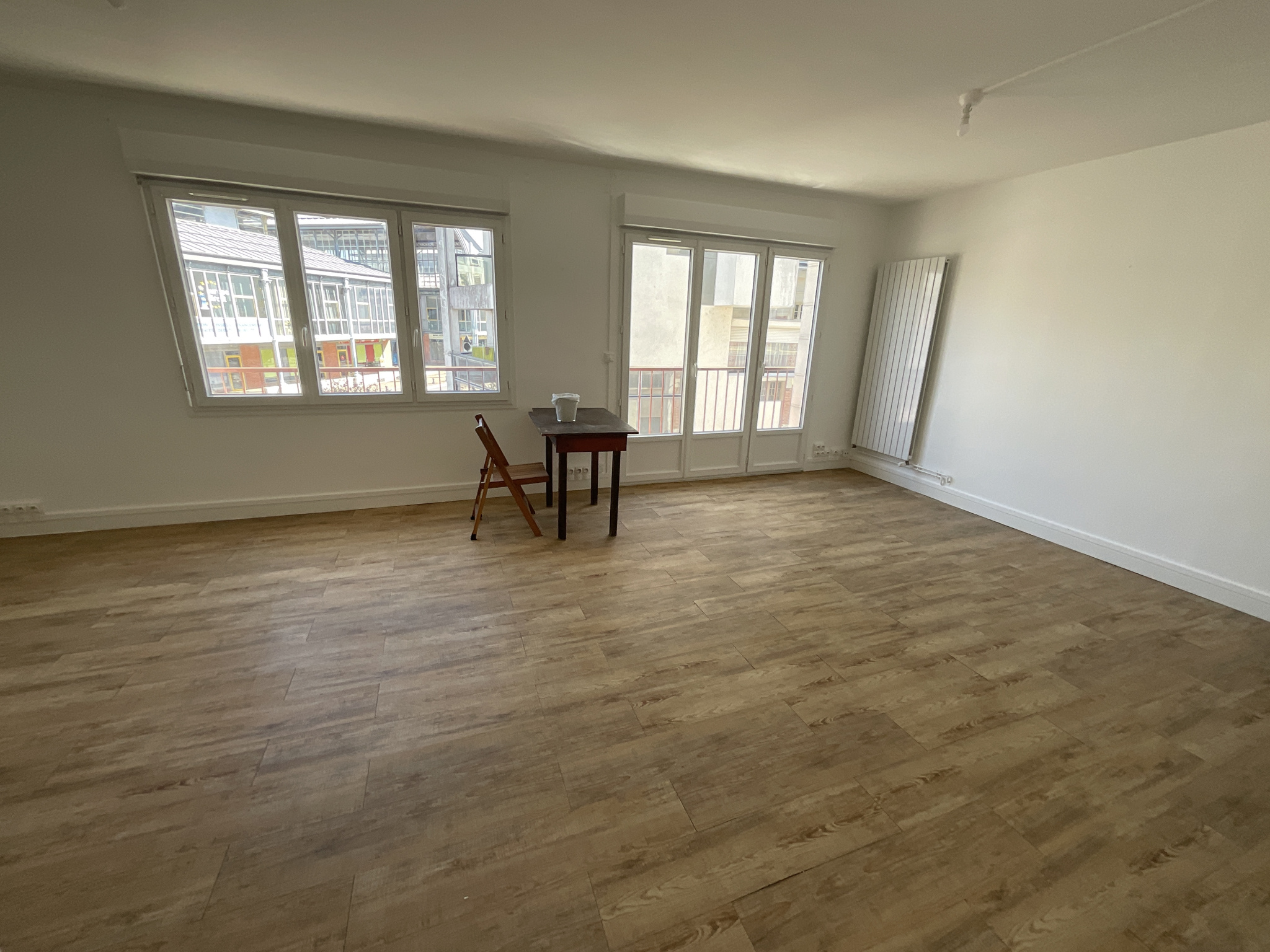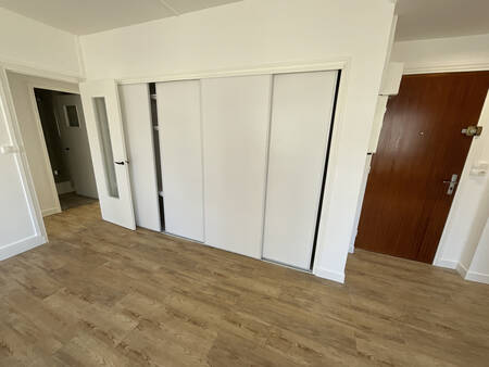 Au 1er étage d'une résidence, appartement lumineux de 70.03m2 comprenant une entrée, une cuisine aménagée, un séjour de 36m2 avec placard, deux chambres avec placard, une salle d'eau et un WC séparé. La location comprend également une cave. Chauffage individuel gaz.