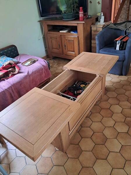 Table basse hauteur 50 cm ouvrante pour stockage 120 cm de longueur et 60 cm de large