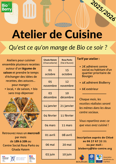 Accueil > Événéments & Sorties Bourges - Vierzon - Saint-Amand-Montrond > Ateliers cuisine 'Qu'est-ce qu'on mange de Bio ce soir ?'