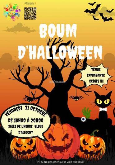 L’APE bénévoles organise une grande boum d’Halloween le vendredi 31 octobre, de 18h00 à 20h00, à la salle de l’Heure Bleue d’Allogny