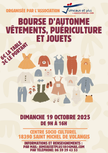 Accueil > Événéments & Sorties Bourges - Vierzon - Saint-Amand-Montrond > Bourse aux Jouets, Vêtements enfants, Matériels de Puériculture
