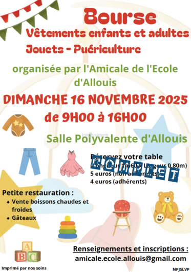 Bourse aux Jouets, Vêtements enfants, Matériels de Puériculture