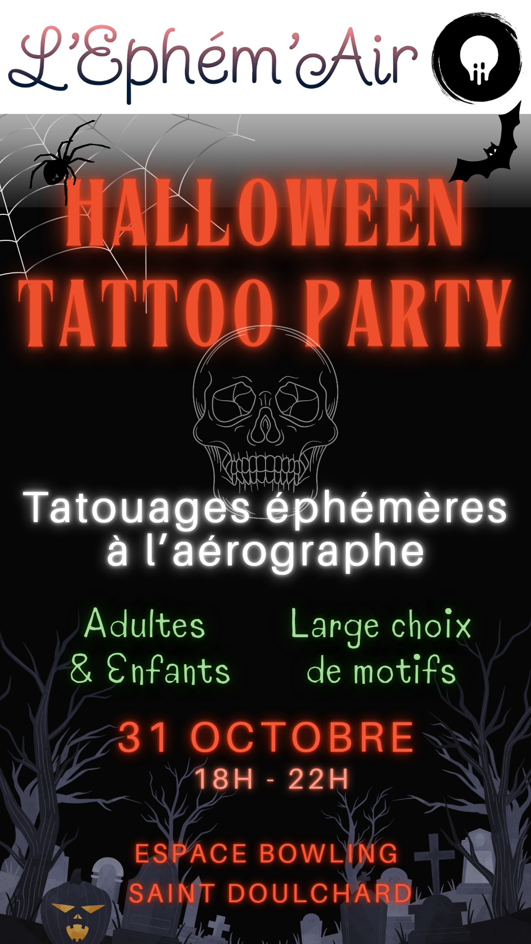 Accueil > Événéments & Sorties Bourges - Vierzon - Saint-Amand-Montrond > Halloween Tattoo Party - Tatouages éphémères à l'aérographe.