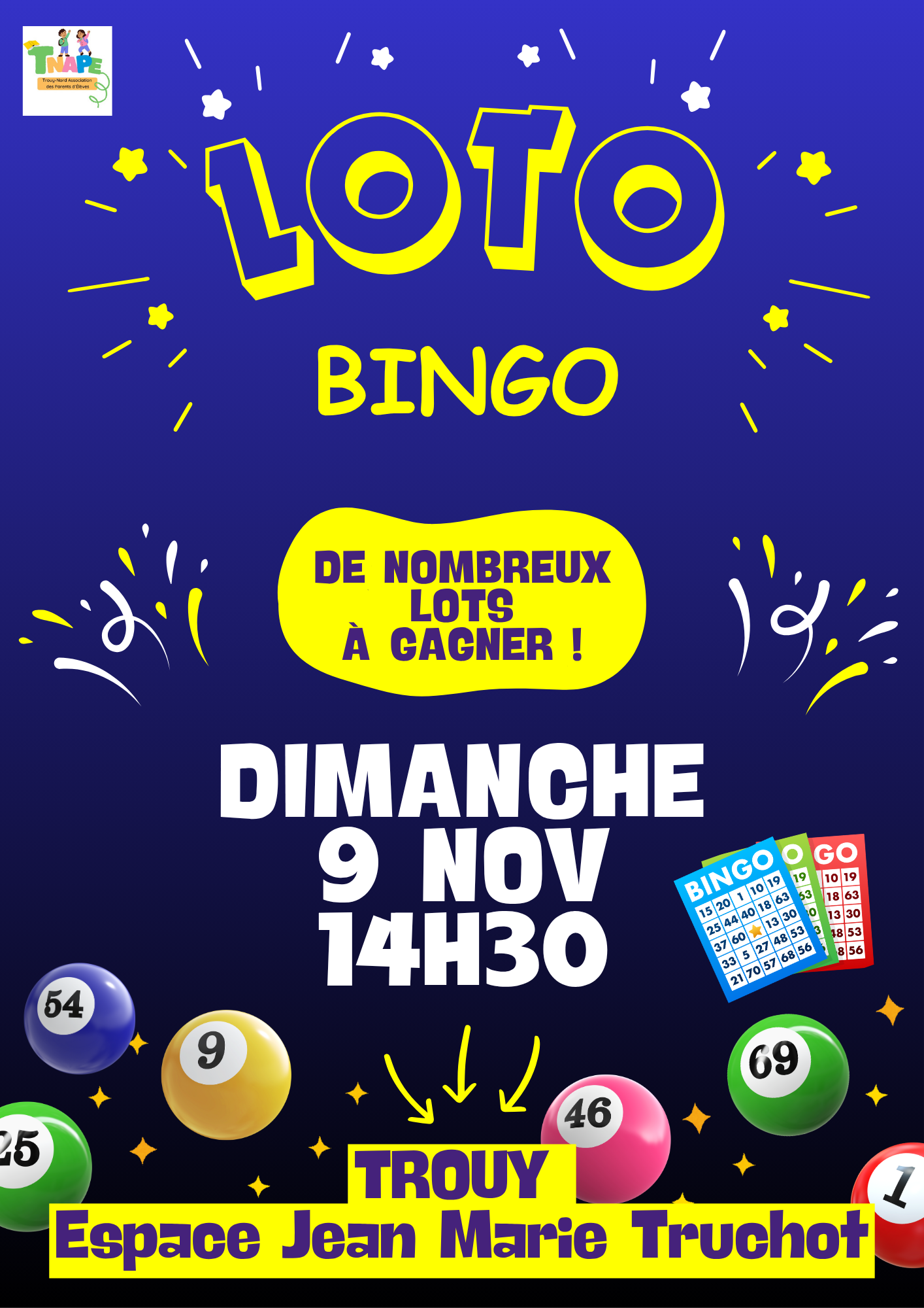 GRAND LOTO DE LA TNAPE ! Dimanche 9 novembre à 14h30 à l'espace Jean-Marie Truchot – TROUY