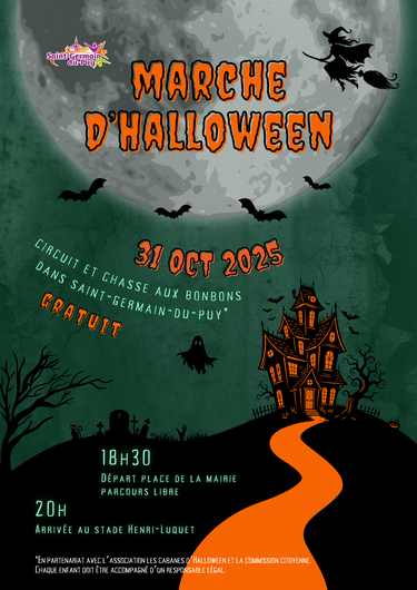 L’arrivée est prévue vers 20h au stade Henri Luquet, après un parcours hanté à la chasse aux bonbons. Organisée en partenariat avec l’association Les Cabanes d'Halloween et la Commission citoyenne, cette marche est libre.