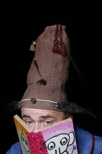Livre histoire, livre maison, livre bête, livre crotte, livre fatigué, livre à trous, très grand livre... Ils sont tous là à nous attendre, ces livres, parfois tranquilles et sages, souvent pleins de mystères. Ils entourent le Père Touff, qui nous reçoit dans son grand manteau bleu. Le maitre de cérémonie est coiffé de son chapeau à « lumouttes ». Bientôt, il va emplir de toutes ses histoires les petites oreilles rassemblées. Mais il n’est pas au bout de ses peines : la souris Cabotine est au travail. Seulement elle, les livres, elle a une façon bien à elle de les lire. Elle les mange, elle les ronge, elle les triture, elle en fait des mystères qui font tourner le Père Touff en bourrique. S’il l’attrape, cette petite peste, attention… !