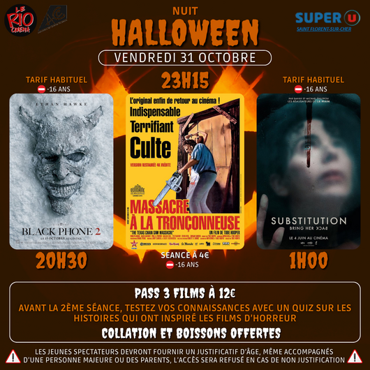 Films seuls : tarifs habituels pour Black Phone 2 et Subsitution, 4€ pour Massacre à la tronçonneuse.