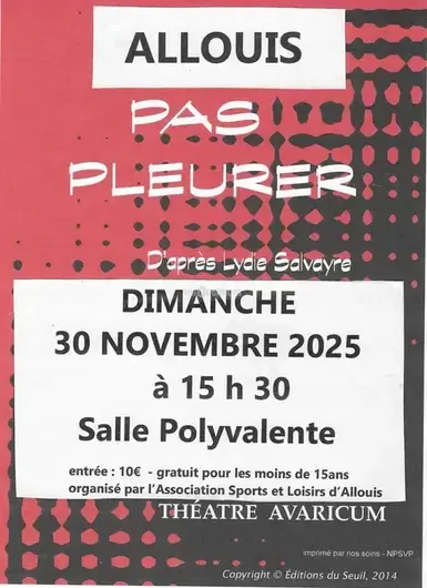 L'association sports et loisirs d'Allouis propose le spectacle "Pas pleurer".