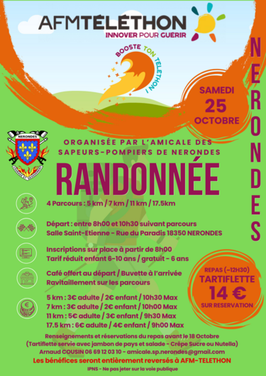 Randonnée pédestre des Sapeurs-Pompiers de Nérondes au profit du Téléthon