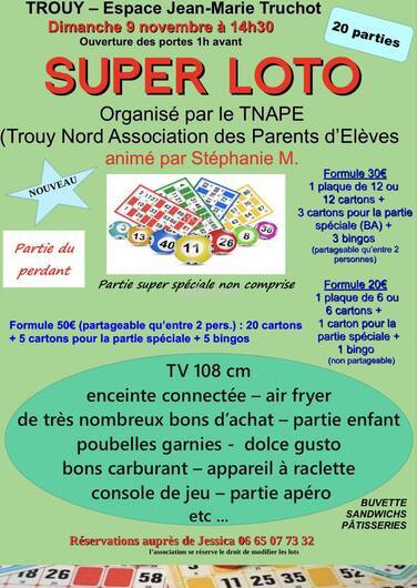 GRAND LOTO DE LA TNAPE ! Dimanche 9 novembre à 14h30 à l'espace Jean-Marie Truchot – TROUY