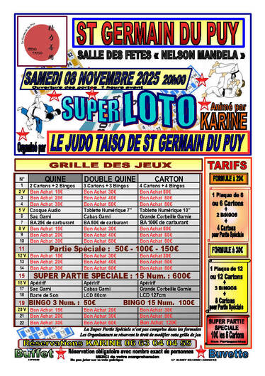 Rifles organisées par le JUDO TAISO SAINT GERMAIN DU PUY le Samedi 8 novembre 2025