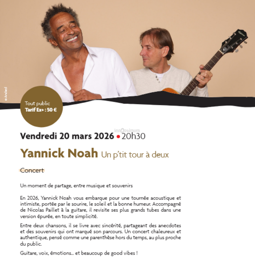 Accueil > Événéments & Sorties Bourges - Vierzon - Saint-Amand-Montrond > Yannick Noah : Un p'tit tour à deux
