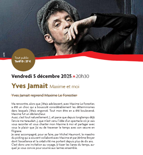 Accueil > Événéments & Sorties Bourges - Vierzon - Saint-Amand-Montrond > Yves Jamait : Maxime et moi