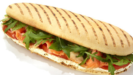 A emporter, 4 paninis au choix parmi 4 recettes salées (4 fromages, Oriental, Parisien ou Saumon) et 1 sucrées (Nutella).