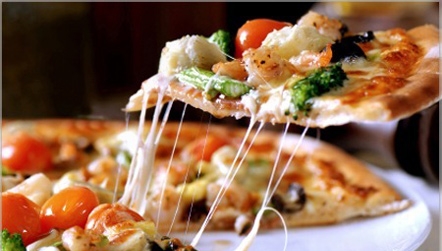 A emporter le soir, 1 pizza SUPER pâte fine 2 personnes 31 cm au choix parmi 28 recettes différentes, sur base sauce tomate ou crème fraîche.